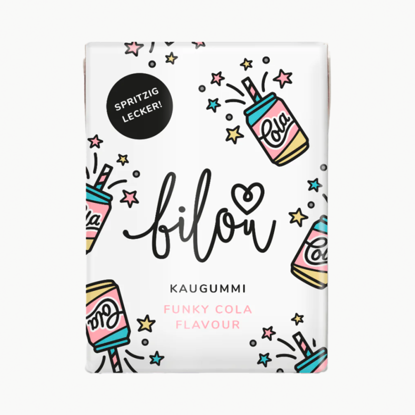 Žvýkačky bez cukru s unikátní příchutí osvěžující coly. Bilou žvýkačky jsou vegan, bez cukru a aspartamu.